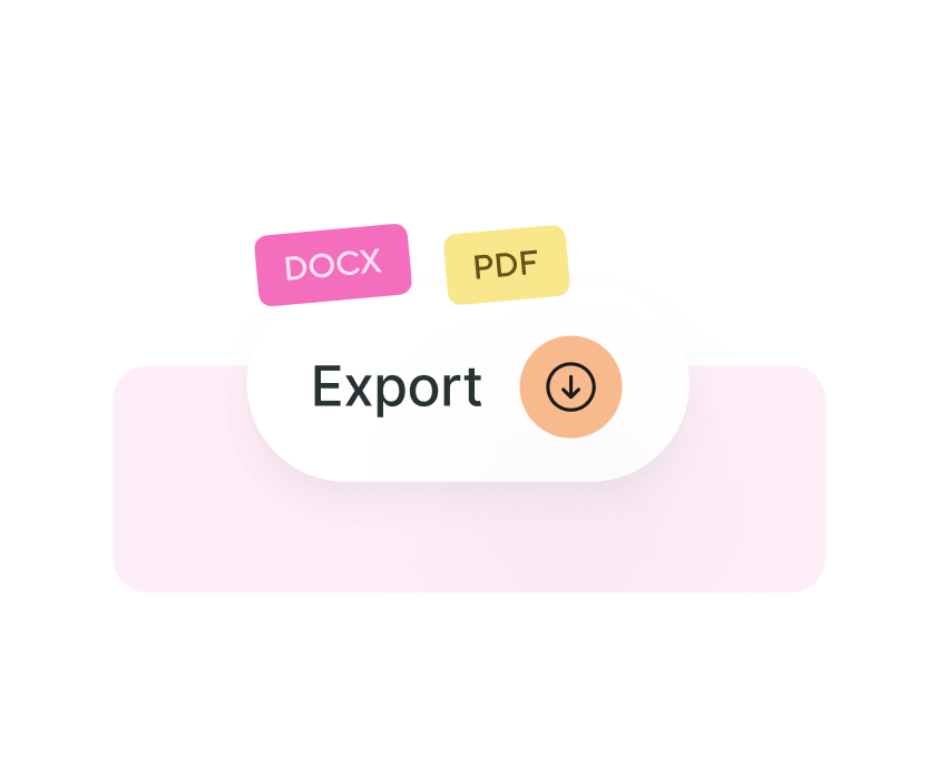 When done, download your MP3 transcript as a DOCX or PDF file by choosing Export at the bottom of your Text Editor.